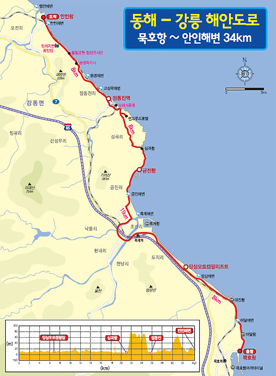 주요 루트 | 묵호항-망상해수욕장-헌화로-정동진-안인해변